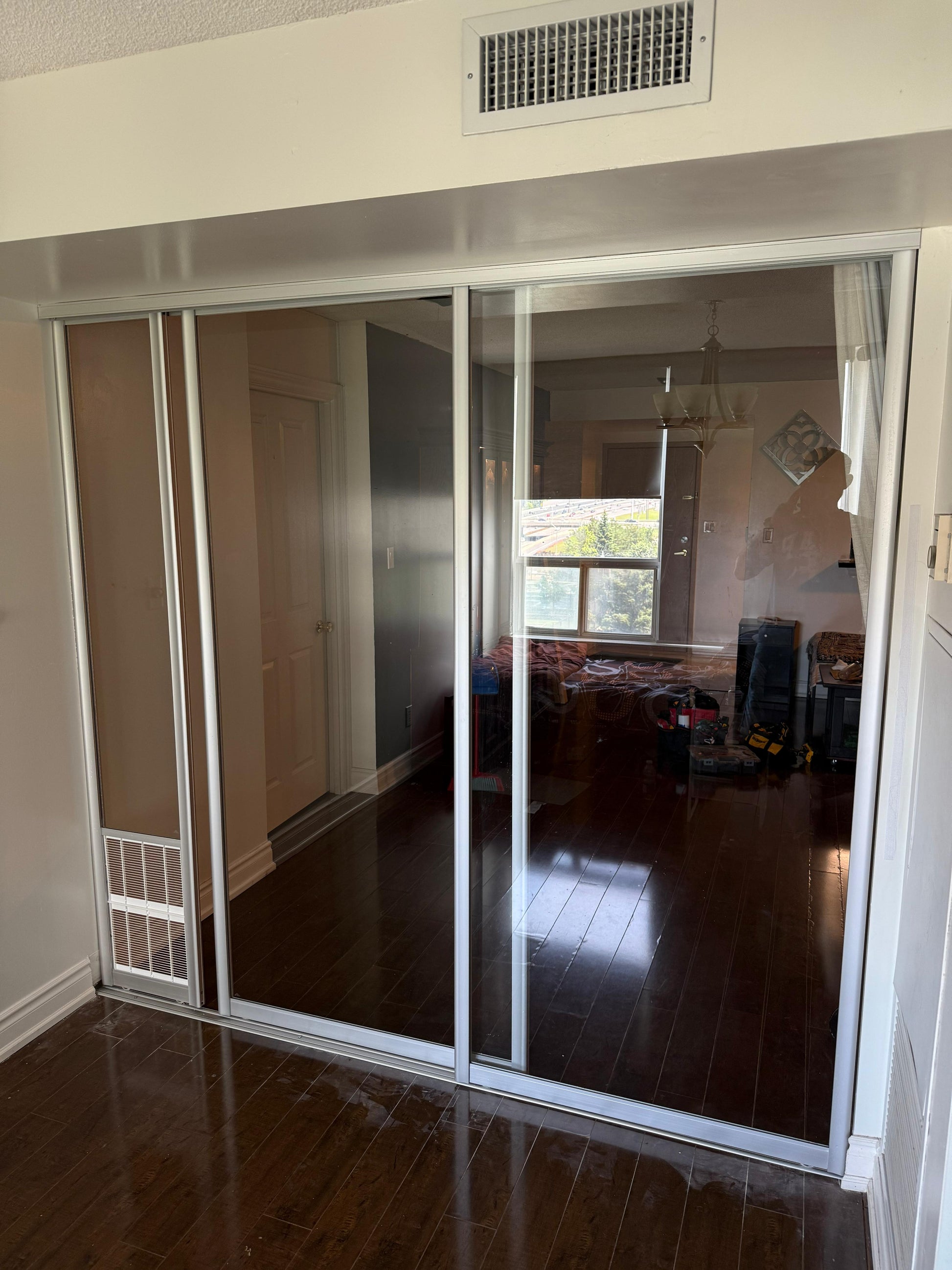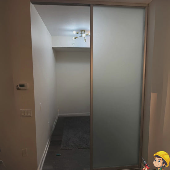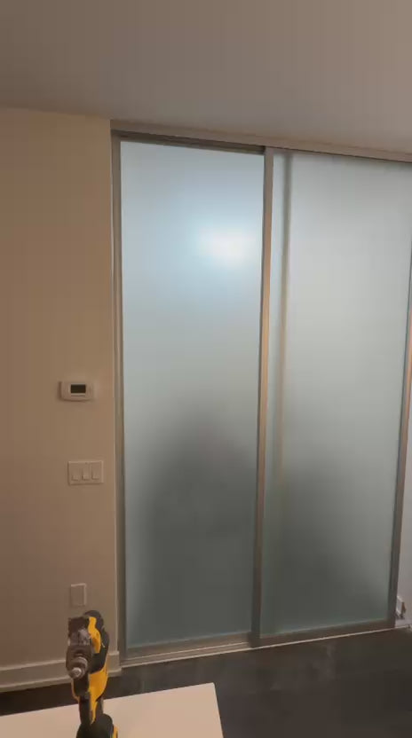 This interior sliding kit features an aluminum frame and 6mm tempered glass, providing a sturdy and stylish solution for condo partitions, home dividers, and closet doors. The set comes fully assembled and includes a top and bottom track for easy installation. Enjoy the benefits of a seamless and functional interior design.